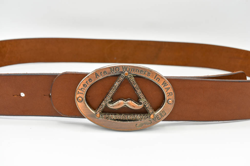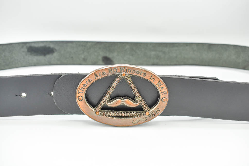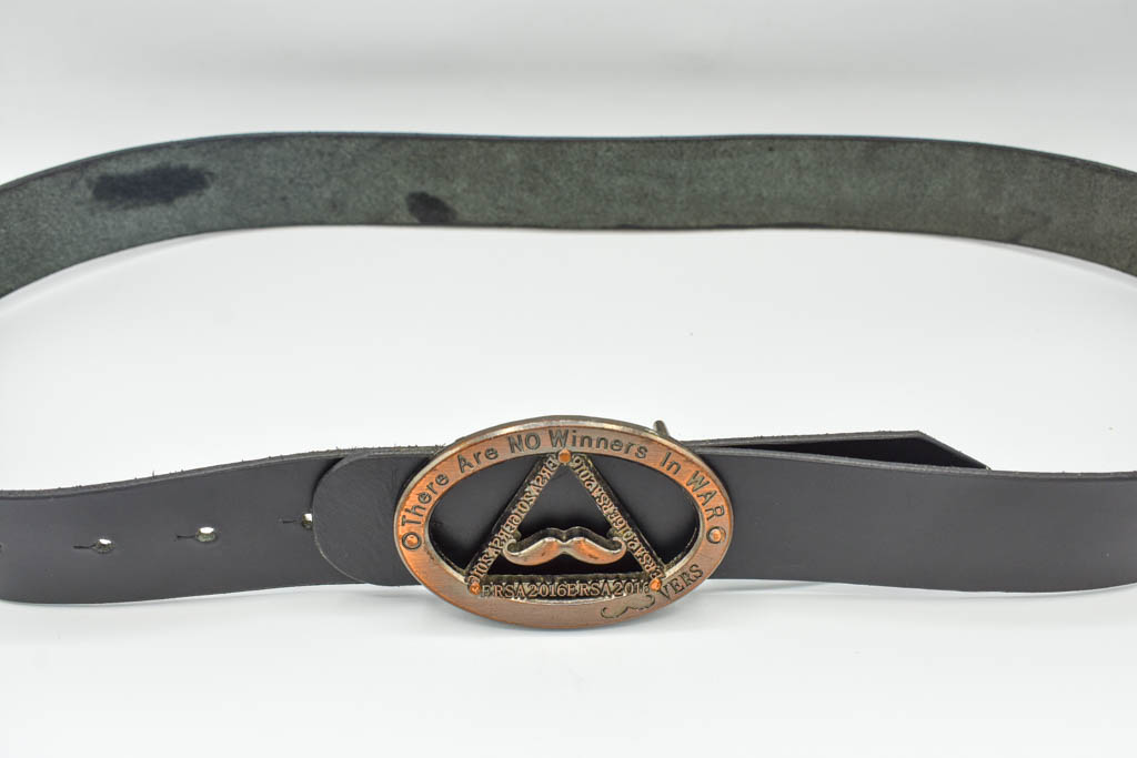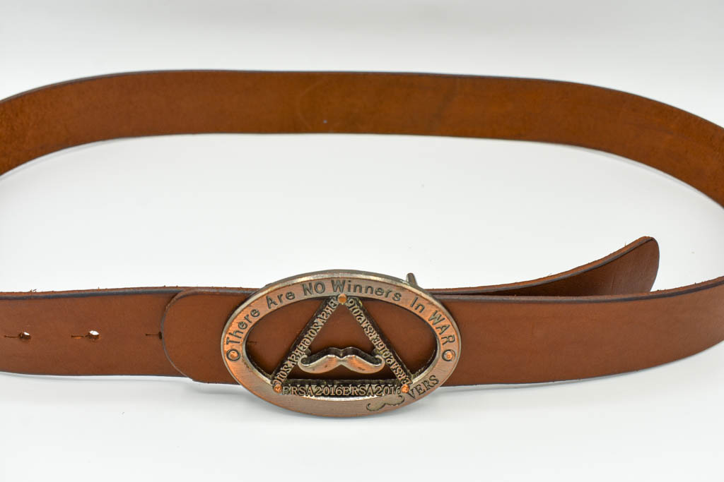 Curea din piele naturală grosime 4mm cu pafta cu mesaj anti război, lățime piele 38 mm.